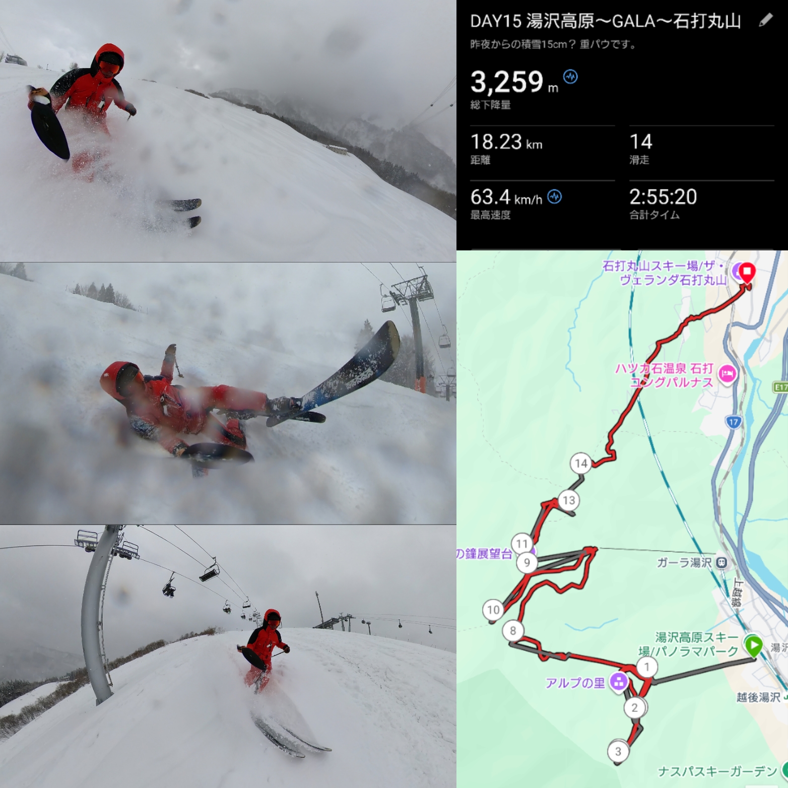 2026/3/8(日) 9:40便に乗って湯沢高原。ロープウェーは3便なので落ち着いてます。 まずはスズラン非圧雪へ。ひざ下パウ。意外に軽い。 湯沢高原、高原エクスプレス1本目は、既に開いてた山頂は目指さず、キスゲ非圧雪へ。ここはくるぶしくらい。そして、トラック入りまくりです。 キスゲ下部には大きな穴。下の水の流れで開いたんでしょうか。怖い恐い。 2本目はスズランへ抜けて。 スズラン非圧雪は底付きしないパウダー。思いっきり吹き上がるわけではないのですが。 3月にしてはいい雪が積もりました。 高原エクスプレス3本目。 山頂まで上がってコースギリギリのパウダーをいただき、そのままスズラン非圧雪。 山頂青ケシからロープの外を見ると、あわや出て行きそうになりますが、そこは気持ちを抑えます。 更に高原エクスプレスのリピート。やっぱりキスゲ非圧雪は狭いので売り切れが早く、スズラン非圧雪にはパウダーが残ります。 とは言えトラックとトラックの隙間を突いてますけど。マイナス4℃の湯沢高原。3月の冬将軍もやればできる? 10:40のランドーに乗ってガーラへ。南エリアも雪がまあまあ降ってます。 ブロ...